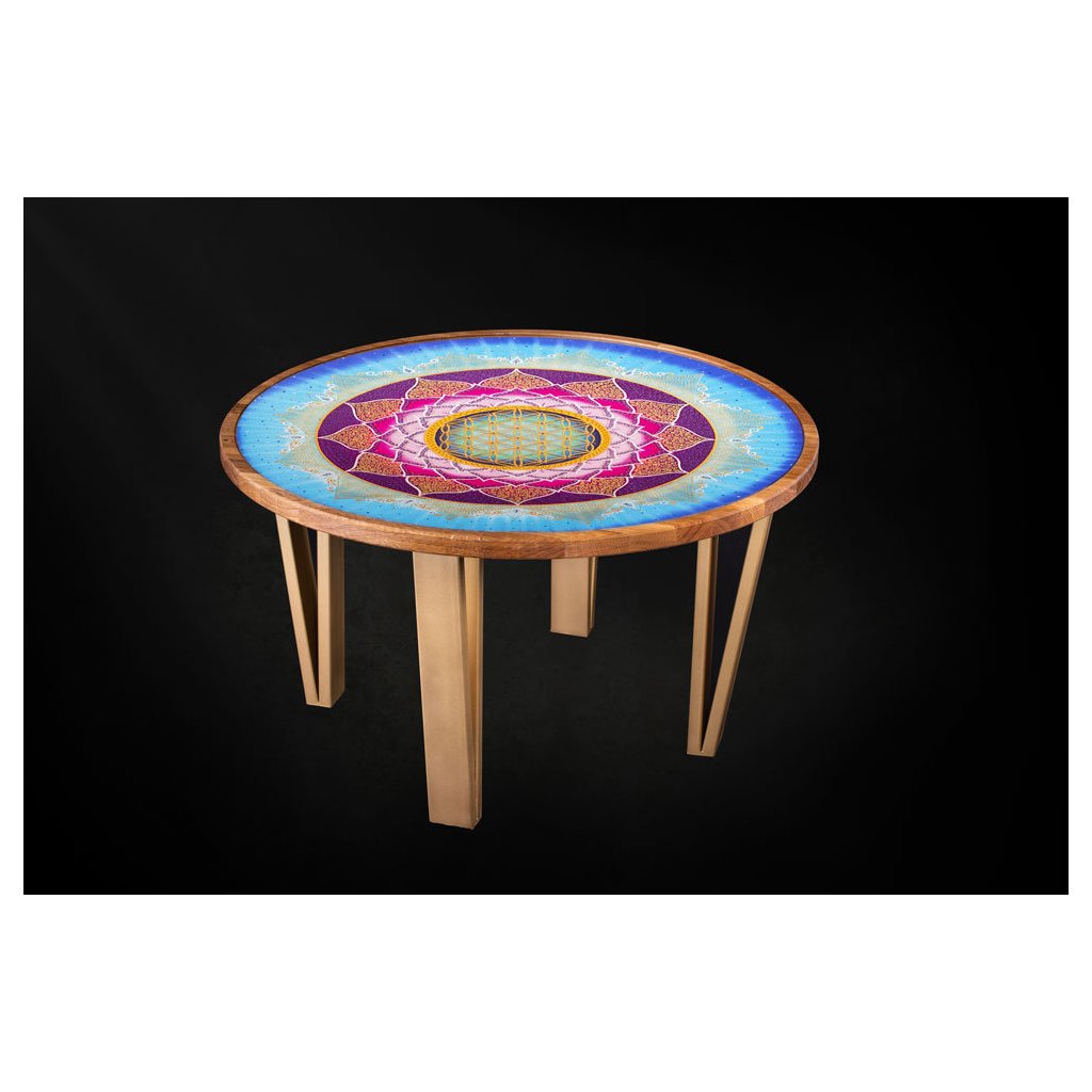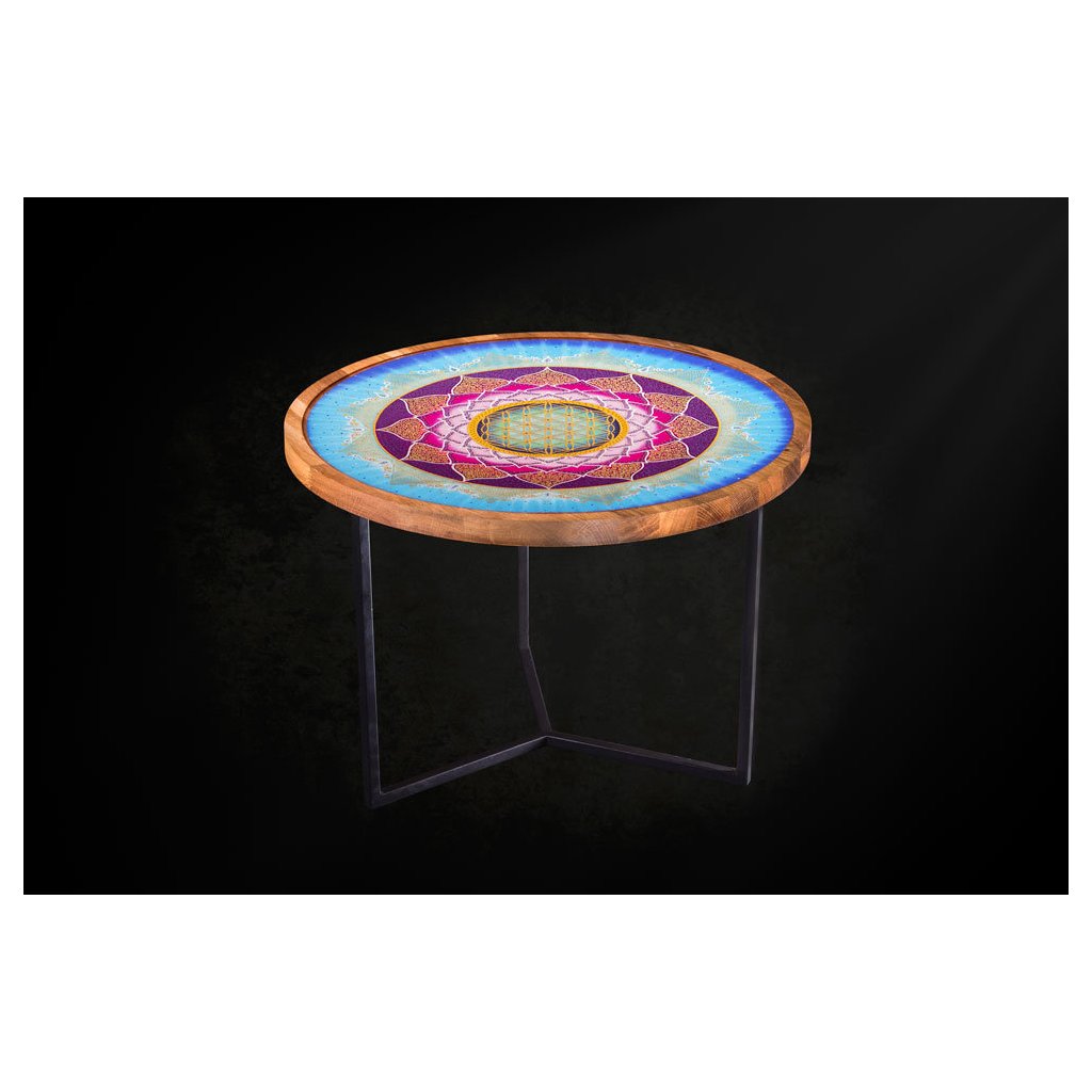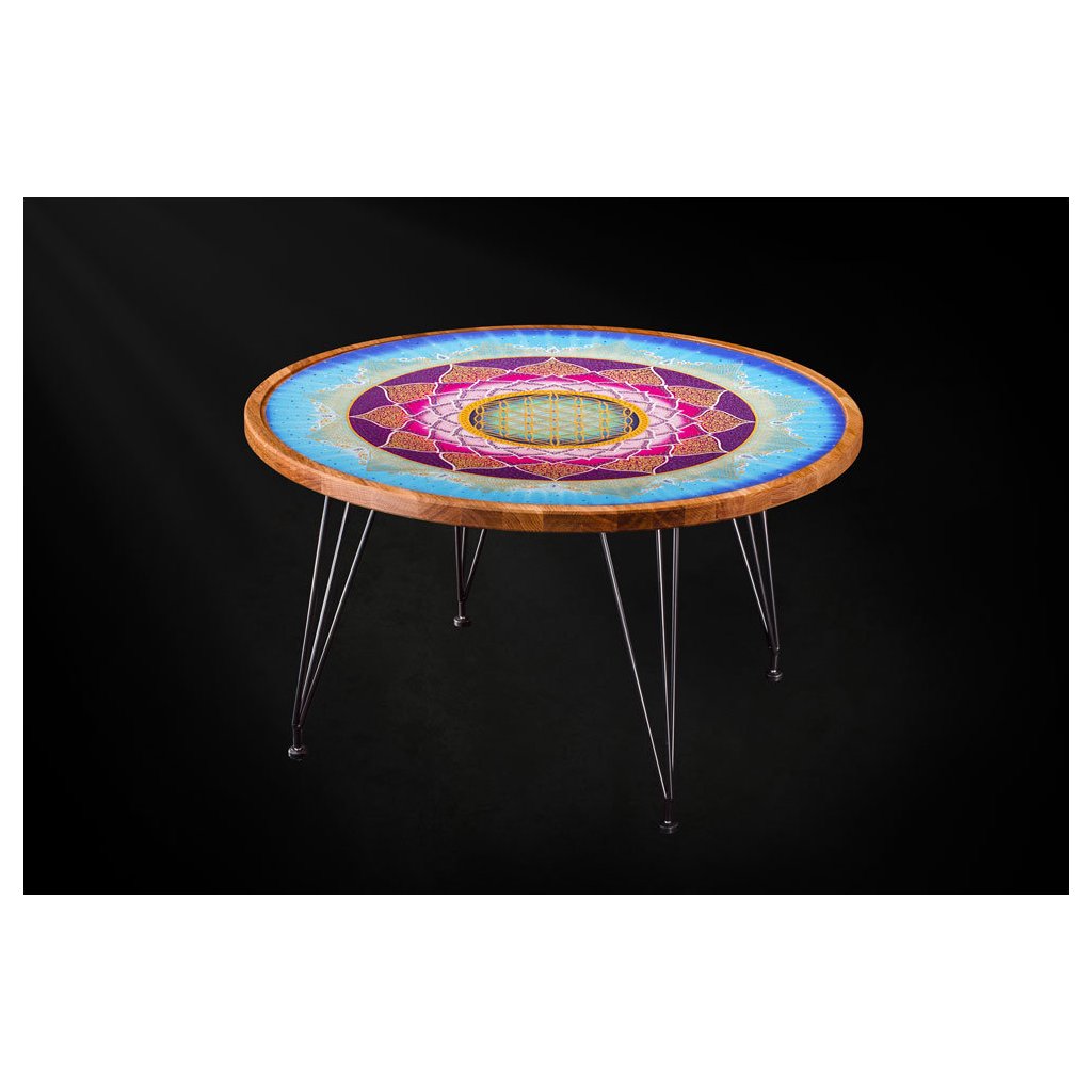 Tento překrásný šperk v podobě konferenčního stolku jsme pro Vás vyrobili s láskou a záměrem Chuti do života: Všichni se rádi obklopujeme šťastnými lidmi, protože štěstí je nakažlivé. Stůl s mandalou Chuť do života je jako stvořen pro lidi, kteří srší pozitivní energií a vědí jiným dodat chuť do života. Vytváří dobrou náladu v prostoru kde je umístnění.