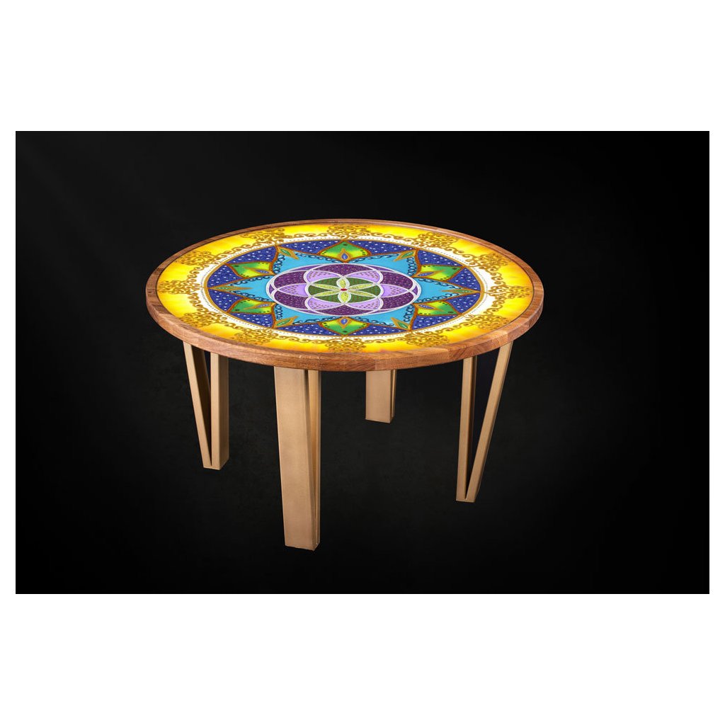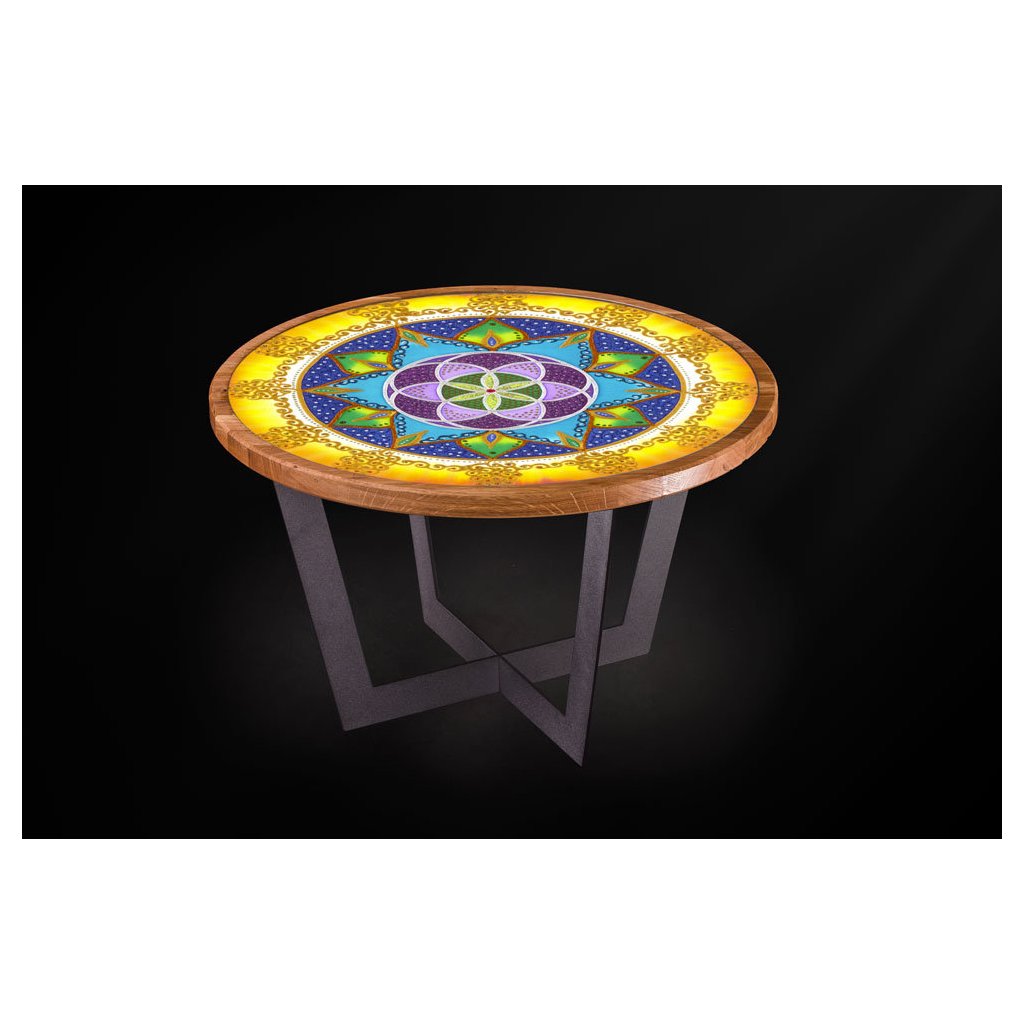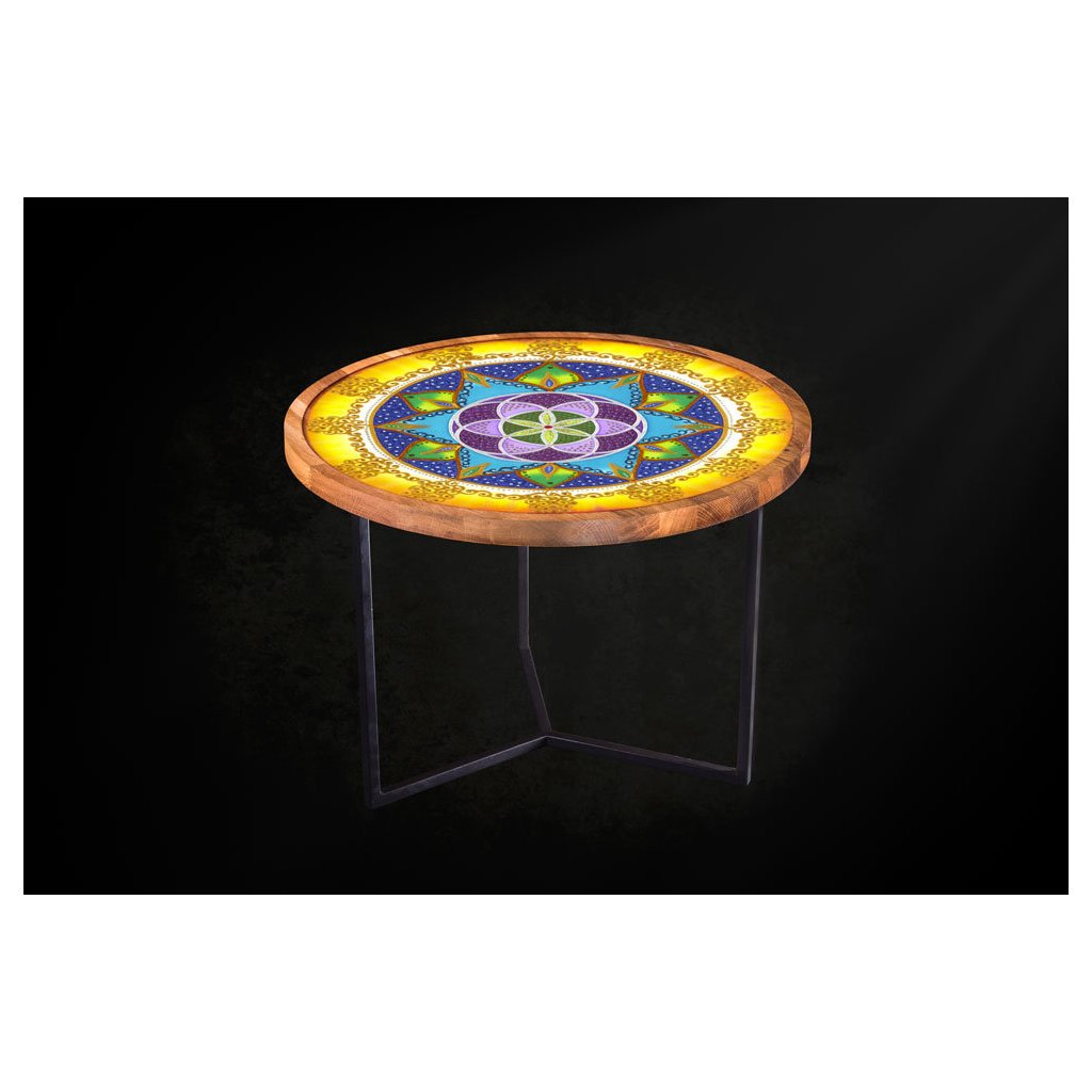 Tento překrásný šperk v podobě konferenčního stolku jsme pro Vás vyrobili s láskou a záměrem Štestí: Jak se říká, štěstí máme ve svých rukou. Stůl s mandalou Štěstí je vhodný pro lidi, kteří si nenechají ujít příležitost projevit se a žít podle svých představ. Podporuje pozitivní přístup k životu a otevřenou mysl.